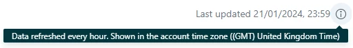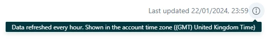 According to the tooltip, data is refreshed every hour. However what I'm seeing is that it is refreshing at the end of the day, with a day's delay.