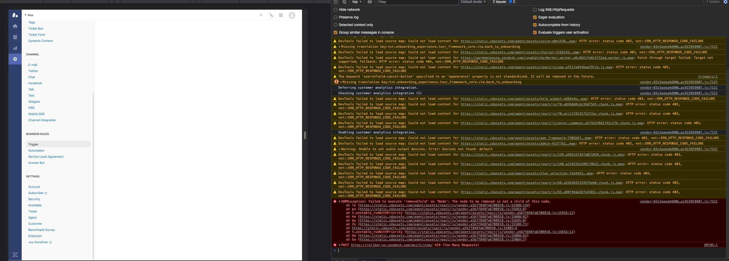 Your setting -> business rules -> trigger page not accessible