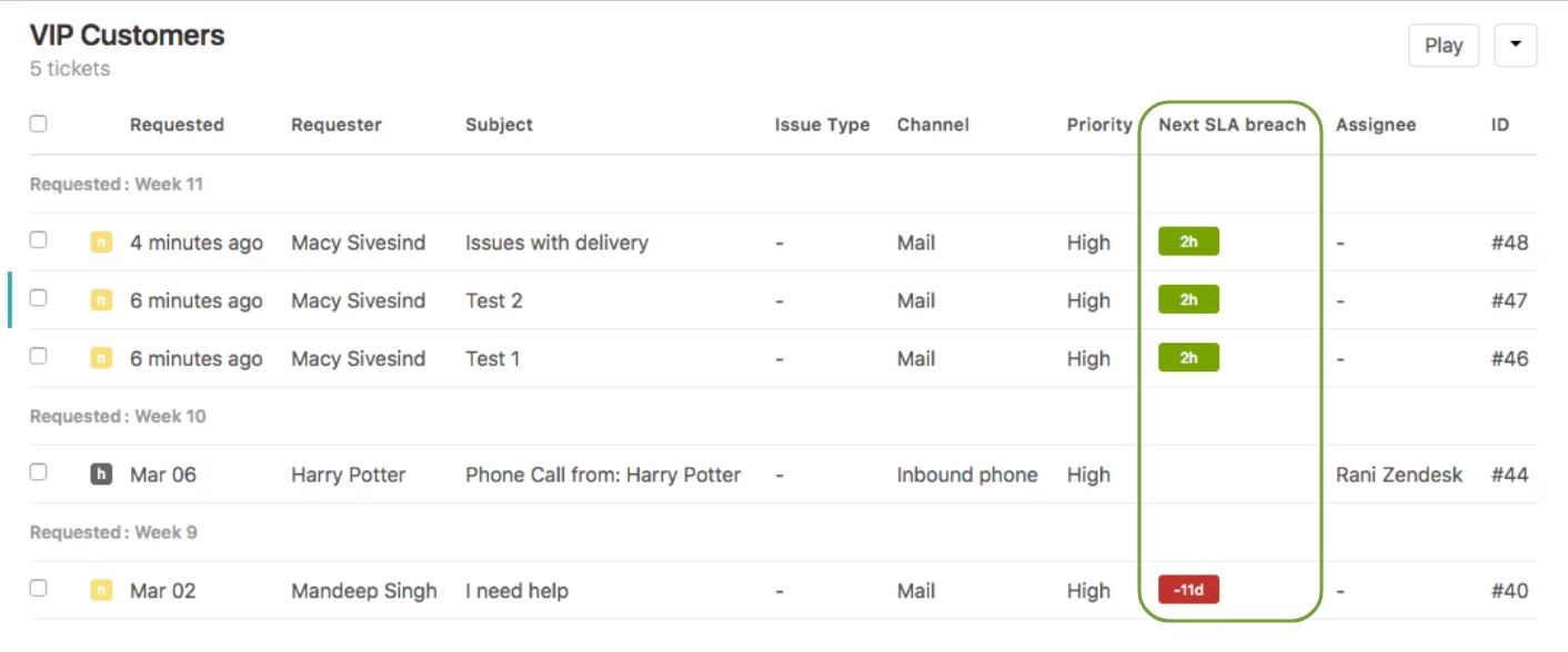 - Leverage SLAs to segment your customers so that they receive a tailored experience. Give your VIP customers the white glove treatment by having your agents stay on top of their tickets.