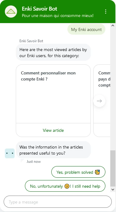When the user is doing a keyword search, if there are matching articles in the Help Center, these are presented to the client, but after, there is no question regarding the utility of these articles or if the user found the answer to his question.