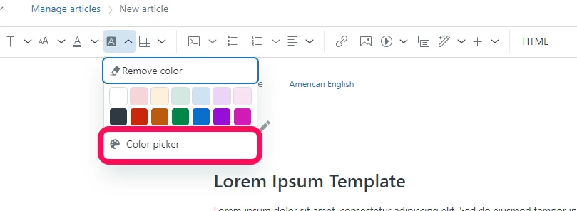 We now have EAP access to the new editor, and I noticed the Font Background Colour tool has a ‘Color picker’ option.