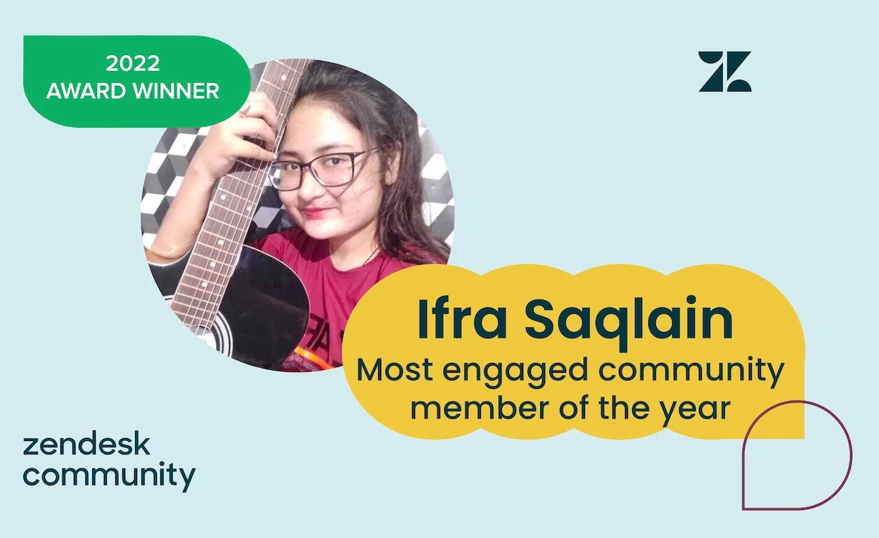 The winner of the 2022 Most Engaged Community Member of the Year is Ifra Saqlain. Congratulations, Ifra!