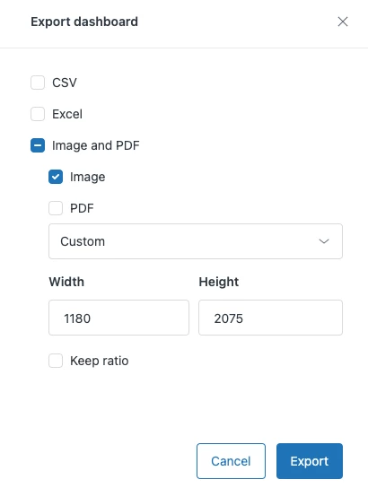 Dashboard export file name
