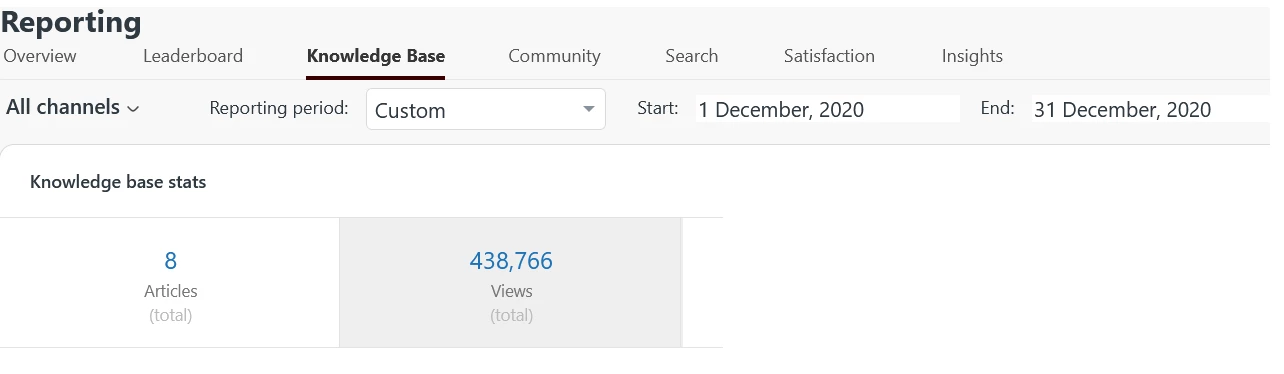 I was under the impression that the Knowledge Base EAP was supposed to report the same data as the Reporting tab in Support. However, when I look at the article views for the same time period I see a significant difference:
