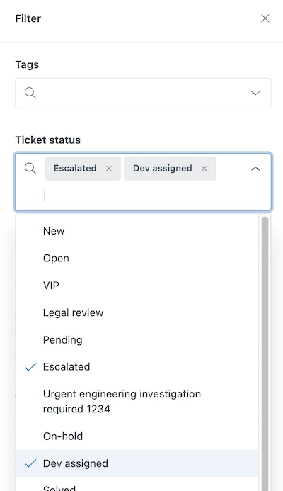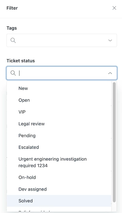- From the Ticket status menu, click the name of the ticket status you want to filter the view by.