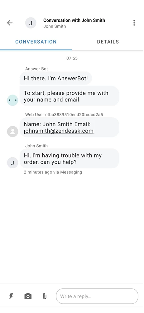 If you are participating in the “New Mobile Support and Messaging” EAP, you can now enable Messaging on the mobile app by sending an email to will@zendesk.com. With messaging enabled, agents can now use the Support mobile app on Android to reply to tickets through messaging channels. Messaging must be enabled and set up on your account first.