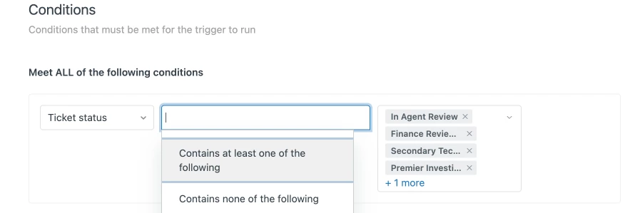 For example, you can use the Ticket status condition in triggers to determine if tickets are updated to a specified ticket status, including system ticket statuses and any ticket statuses you’ve created.