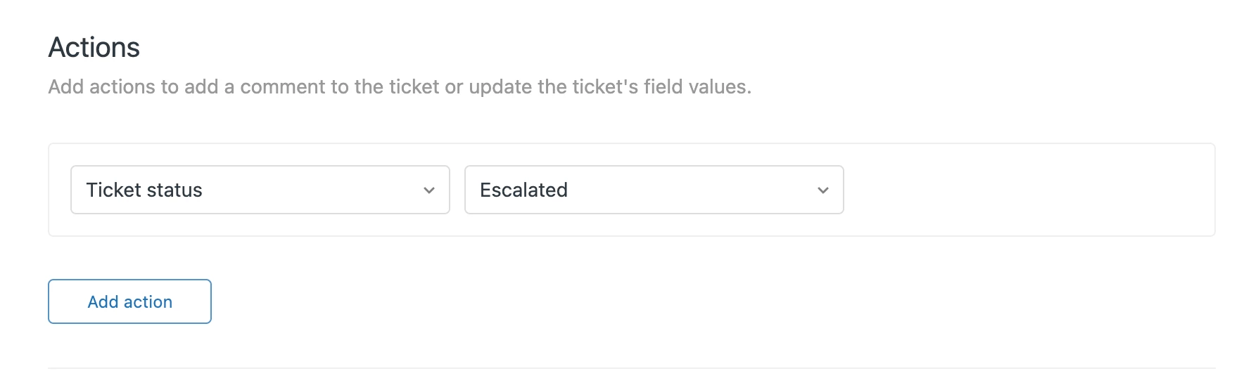 For example, you can add an action to a trigger that updates the Ticket status to one of the system ticket statuses or any ticket status you’ve created.