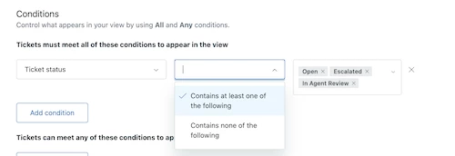 For example, you can create a view of tickets that contain one of the system ticket statuses or any ticket status you’ve created.