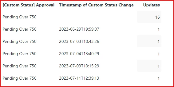 I need some help in further customizing our ticket status change report. Currently, we are able to view the timestamp when the customer status code was changed; however, we only want to view the last timestamp instead of the timestamp each time the status was changed on a ticket. Below is an example of our current setup.