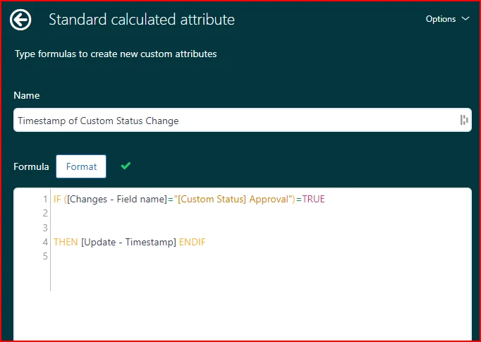 Below is the current formula we are utilizing for the Standard calculated attribute. Are there any additional modifications we can make to only view the last timestamp for the custom status code change?