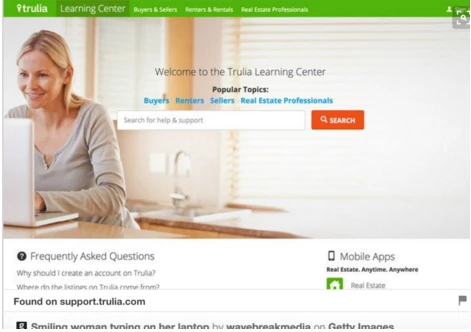 A great customer example would be Trulia. They moved their search bar to the middle of the page and made it clear you can search specifically for “Help and Support.”