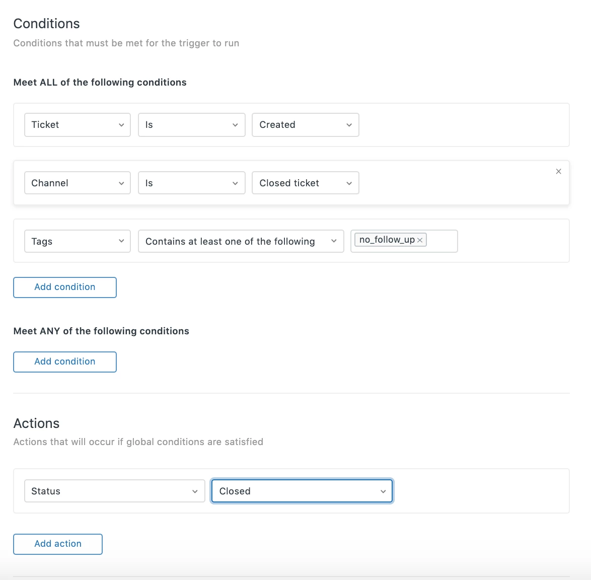 I need to disable "create follow-up" from a closed ticket based on the user. How is this done?