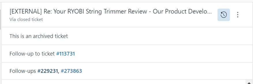 I've encountered a scenario where a ticket is closed and the customer responds to that ticket creating a follow-up ticket. So far, that's fine. It's creating a ticket flow and passes on all the information from the previous ticket to the follow-up ticket. But then the customer responds again to the original ticket and it creates a second ticket. So from one closed ticket, I now have two ticket streams. Does anyone know how to find tickets where this has occurred?