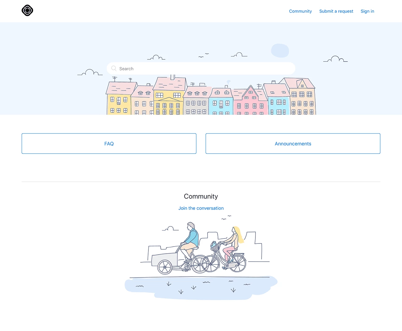 - Update the look and feel. You can easily add your branding to the Copenhagen theme by updating the images, logo, colors, and font in the Settings panel (see Branding your Help Center). You can find recommendations for image and logo sizes for the Copenhagen theme in the branding article.