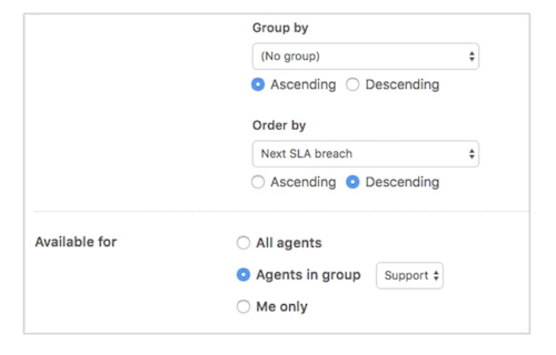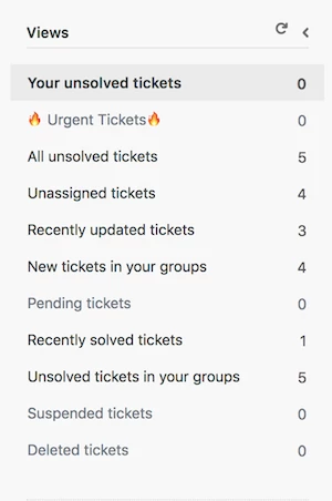 - If you’re running low on space in your sidebar, consider consolidating views. You can use the grouping and sorting function to subcategorize tickets instead of creating new separate views.