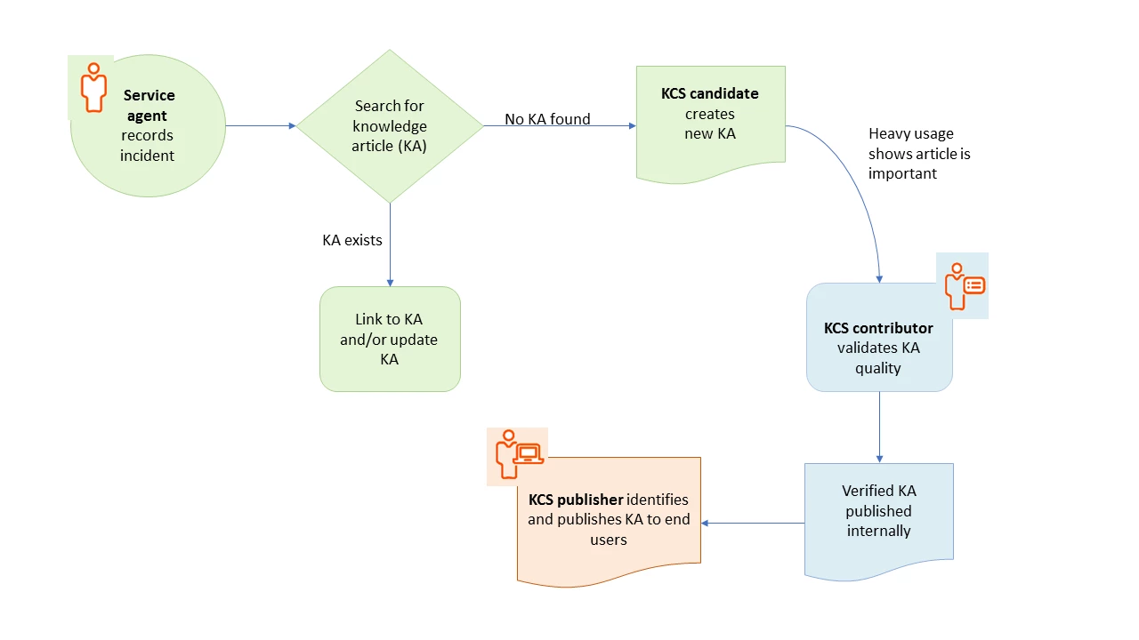 KCS is a rich methodology that enables users to create and maintain knowledge within an organization. The Consortium for Service Innovation has created the KCS methodology and maintains it. The KCS methodology is as follows: