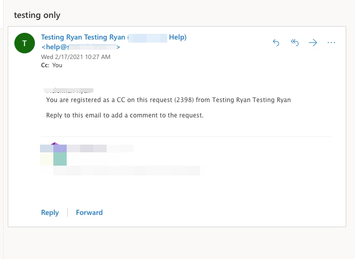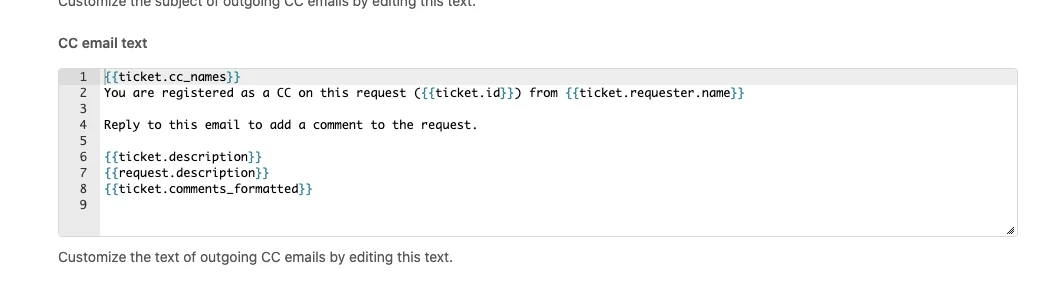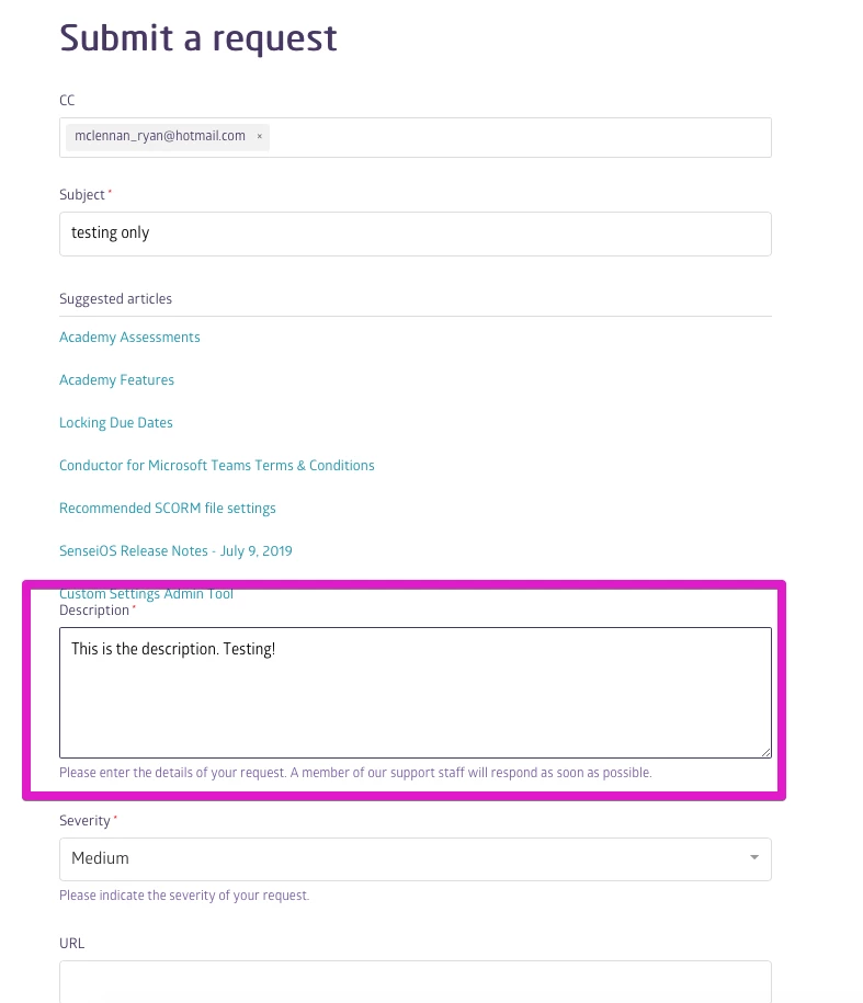 However, the email that the CC recipient receives, doesn't include the Description that appears on the help request submit form.