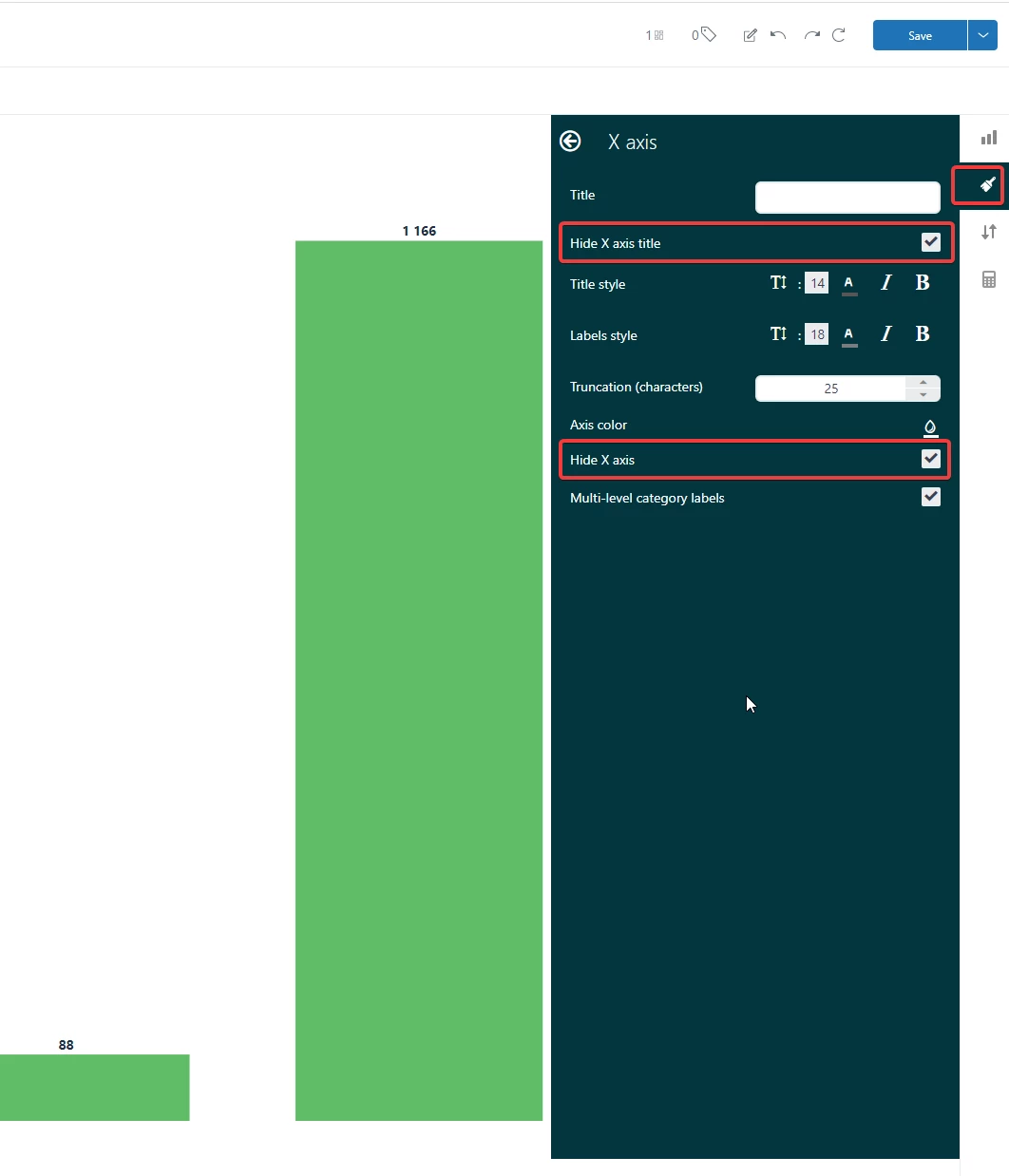 If you choose the hide X-axis option for a report, it will only hide in properly i classic builder. In beta, it will leave you with a ugly blank space.