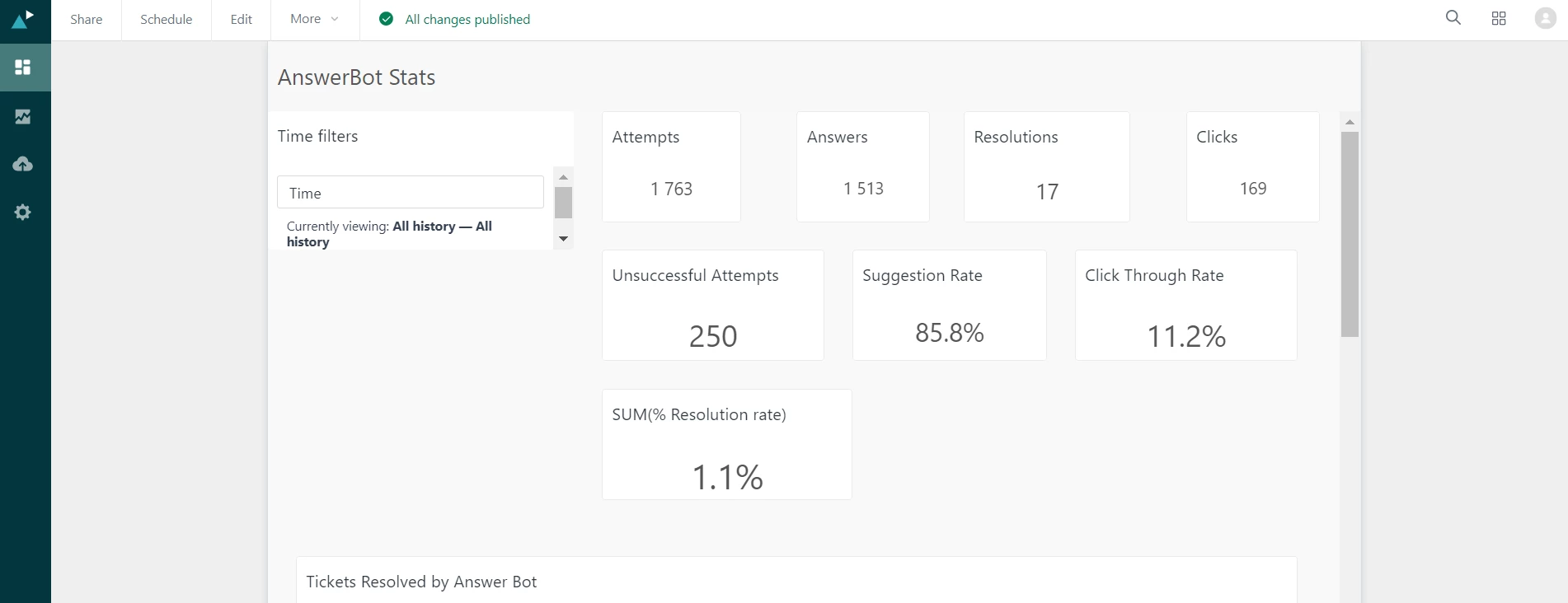 A few months ago, I have created my answer-bot dashboard to get the stats about who is clicking and viewing our suggested articles and getting answers through. But I'm still unable to get the logs in detail...This is my dashboard, I can get the numbers but can't get the detail about who clicked ( like user name, etc).