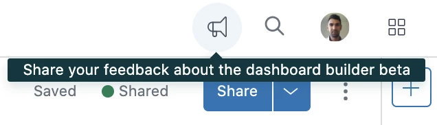 You can share your feedback within the new Dashboard Builder by clicking the megaphone icon in the top-right corner.