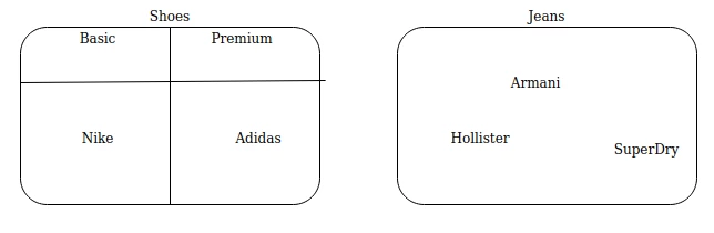 In the diagram that I've attached here, you can see what I mean. Now the way we are handling it in Jira is that each product (shoes or Jeans) is a Project. Inside the project we have the customers (e.g. Nike, Adidas, Armani...) And each project has it's own SLAs, ticket form, labels and so on. Furthermore in Shoes Product we have 2 subscription "Basic" and "Premium" and each subscription has it's own SLAs.