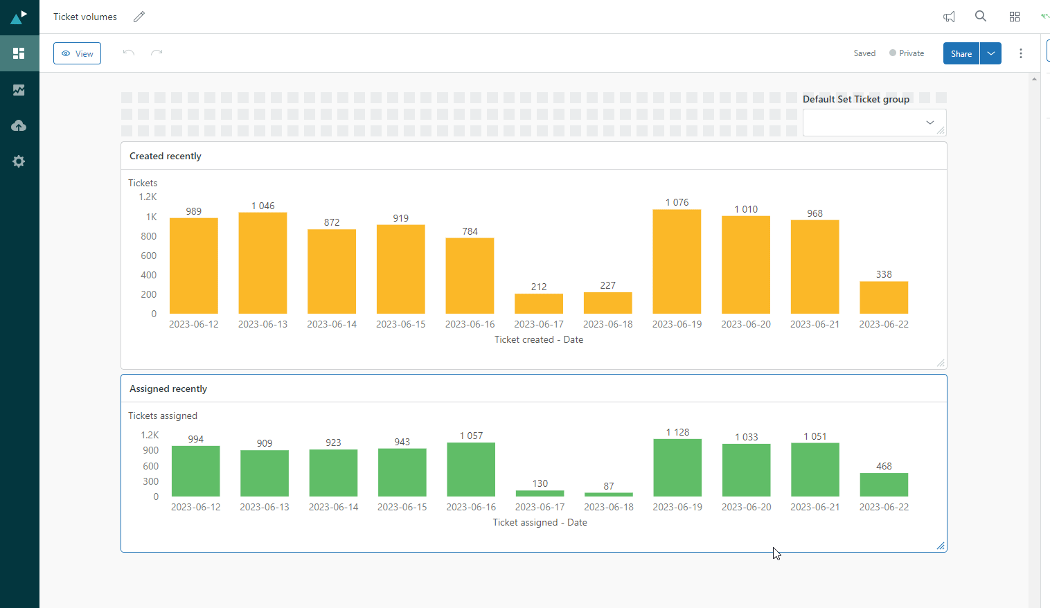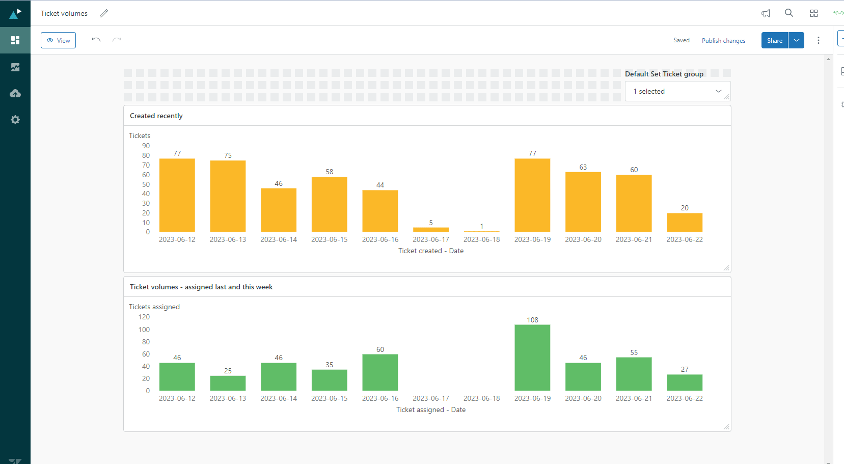 This report was first created with a x-axis "Tickets created - YYYY-mm-dd" (custom attribute).