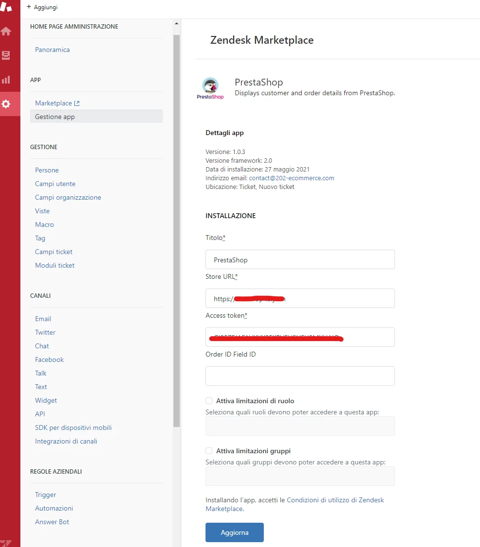 I need to install the Prestashop app, to integrate an e-commerce website with Zendesk.