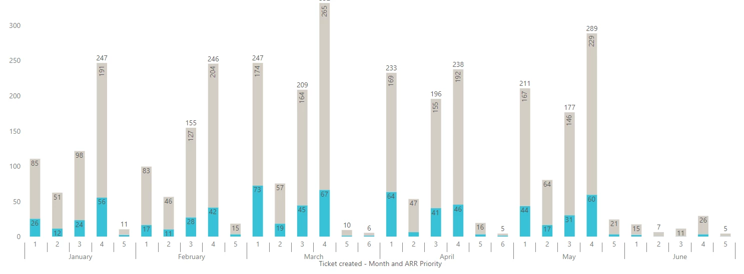 I have created a report showing open tickets vs one touch tickets each month as seen below: