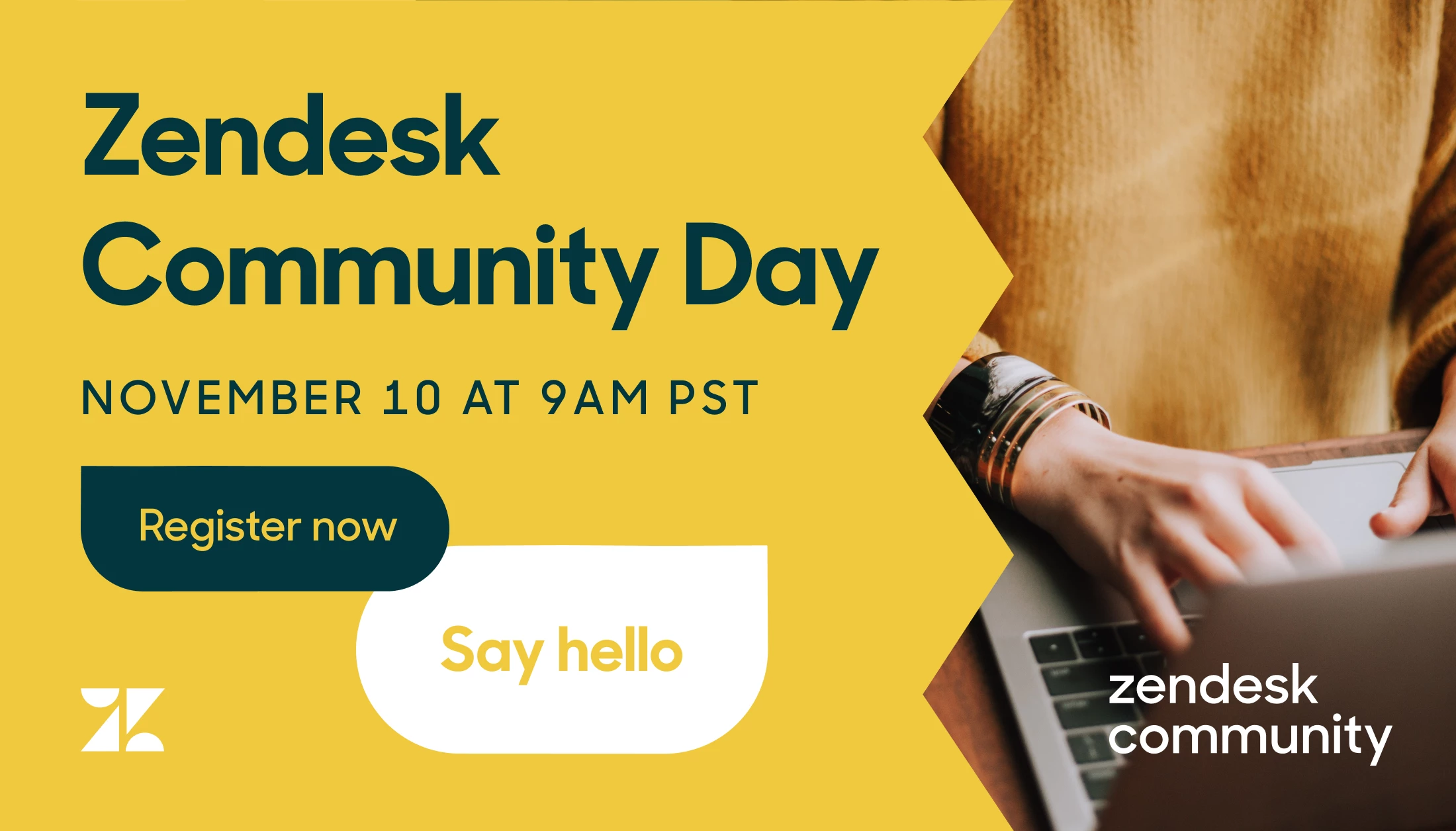 You're invited to our first-ever Zendesk Community Day! Join us on Wednesday, November 10 starting at 9am PST for a day full of opportunities to meet and connect with other Zendesk users, discussions with product managers, fascinating keynote speakers, and more!