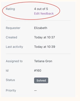 However even though we turned Customizable CSAT on and the user does get the rating email request, but nothing shows on his view. Here is how it look for our users: