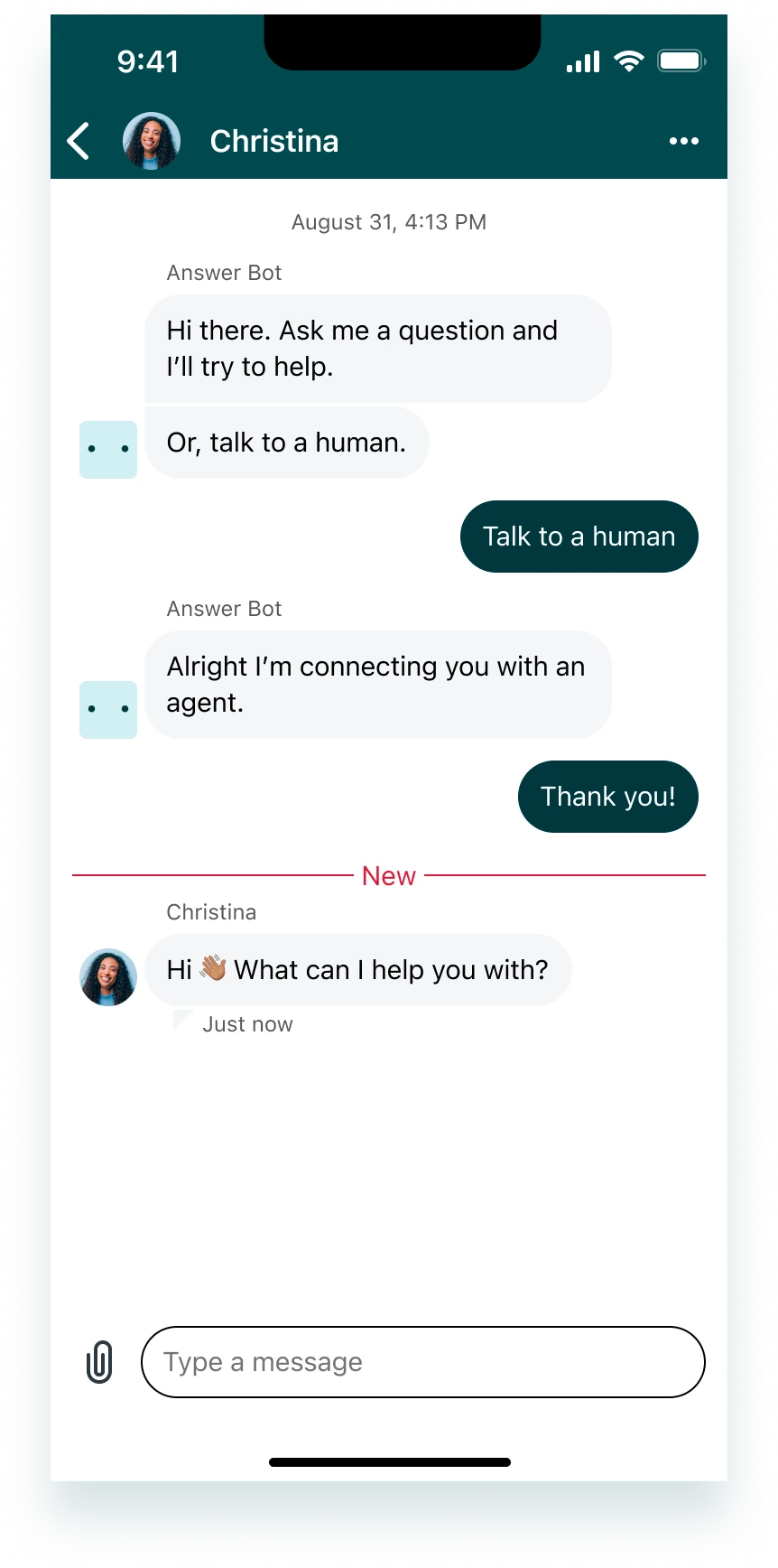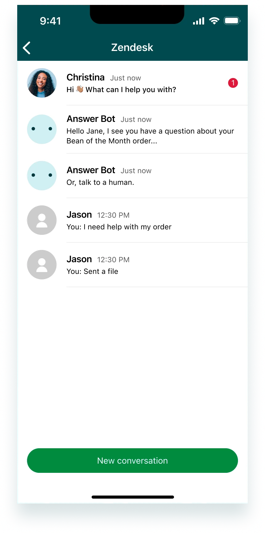When an end user launches the Zendesk mobile SDK for the very first time, there won’t be any previous conversations at this point. So, in this case, a new conversation will automatically be created for the user when the SDK is launched and they will directly navigate to the new conversation screen.