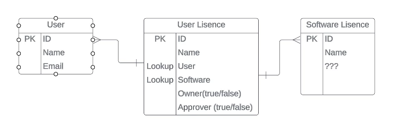 I want to be able to link multiple users to one software license. I can do this with lookup relationship fields. Now, since end-users use multiple applications, I want to link our users to multiple software licenses.