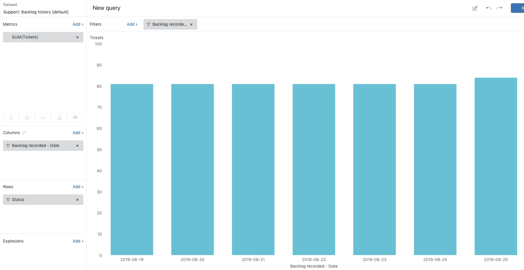 We are currently using a Plecto Dashboard to show how many incoming Open tickets we have hour for hour.