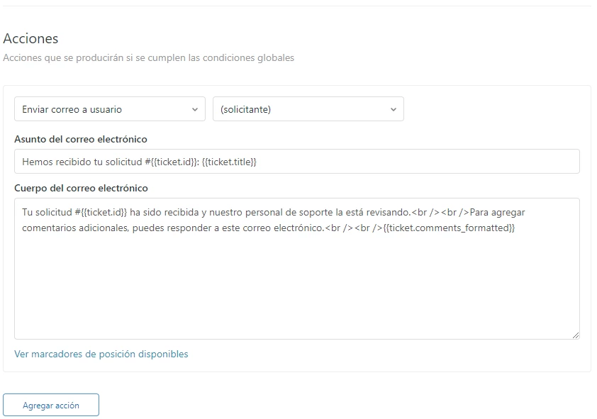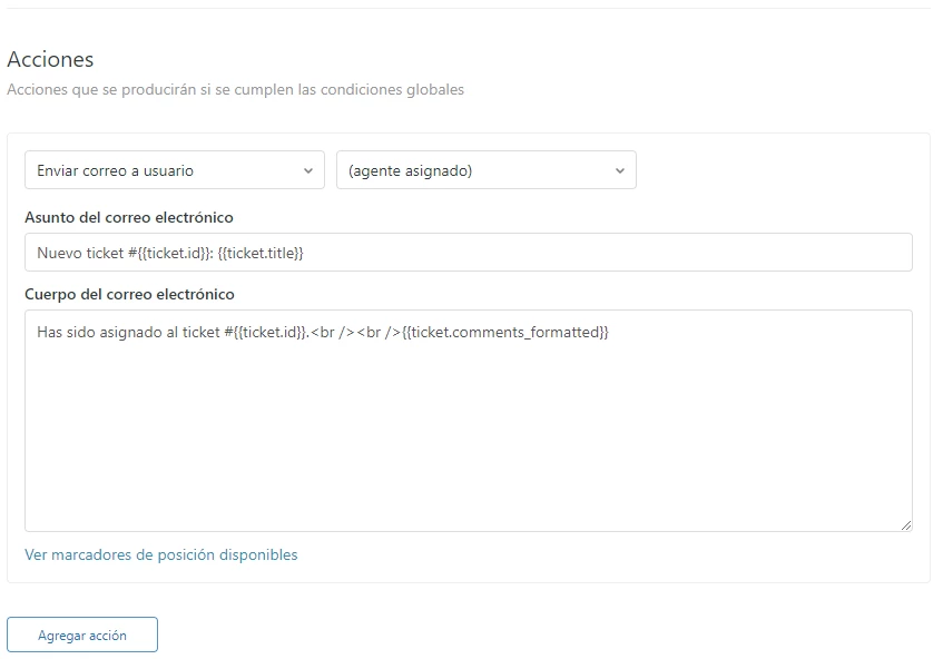 I have setup an email notification based on this post: https://support.zendesk.com/hc/en-us/articles/203662116-Using-placeholders