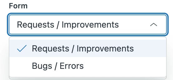So basically, when the end user selects the Bugs/Errors form, the Description part of the ticket will be pre-filled, but when the Requests/Improvements form is selected, the Description section will not be pre-filled.