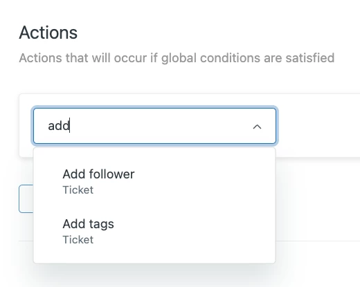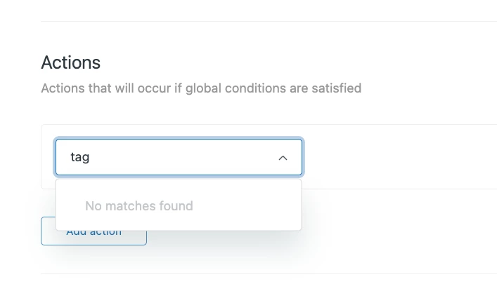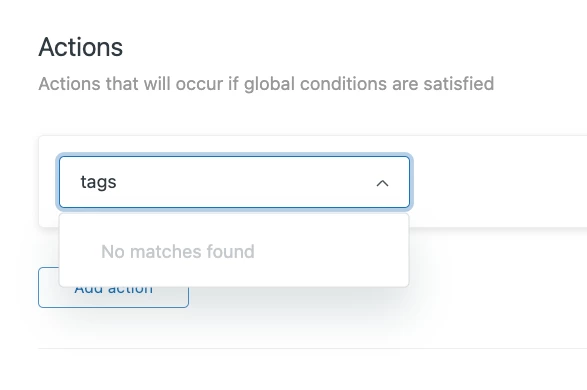 For example, I went to create a trigger whose action would add a tag. Typically I would open the action dropdown and just type 'tag or 'tags' and get a list of all actions that contain that word.