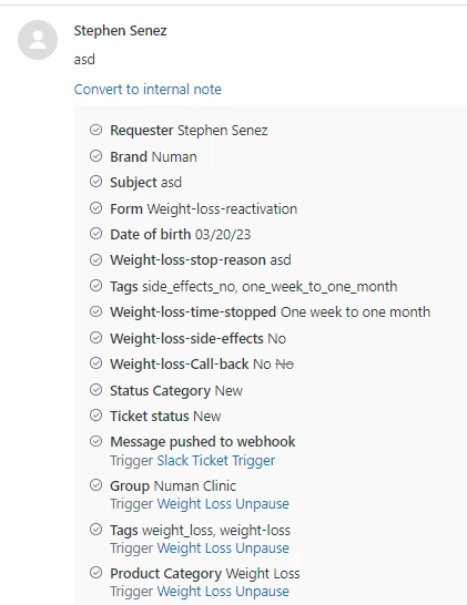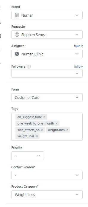 If you look at the screenshots, the events indicate that the ticket form 'weight-loss-reactivation' form should be selected. However, you can see that the 'Customer Care' ticket form is selected. Can someone point me in the direction of a setting that might be causing this?