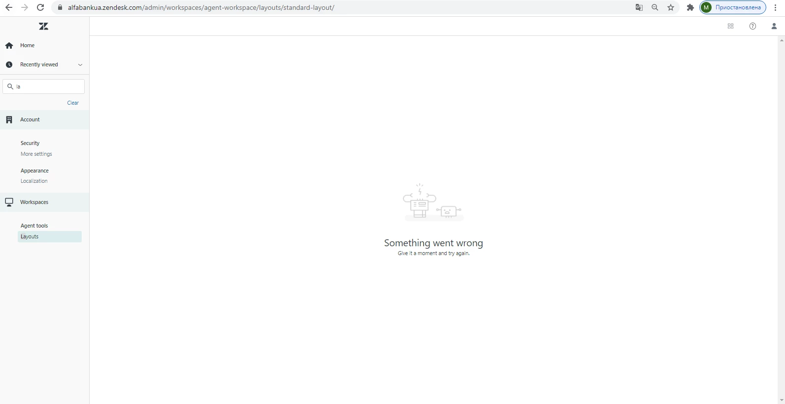 I am facing a problem, when I go to admin center, and click on the layouts section, I get an error as shown in the screenshot, and in the developer tool I see error 451.