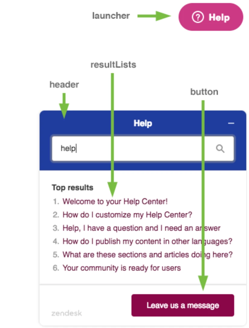 您可以更改下表中的 Web Widget 组件的文本,也可以自定义帮助中心搜索占位符文本。