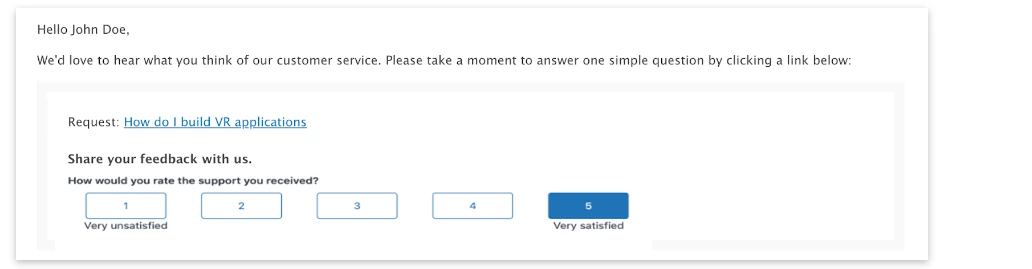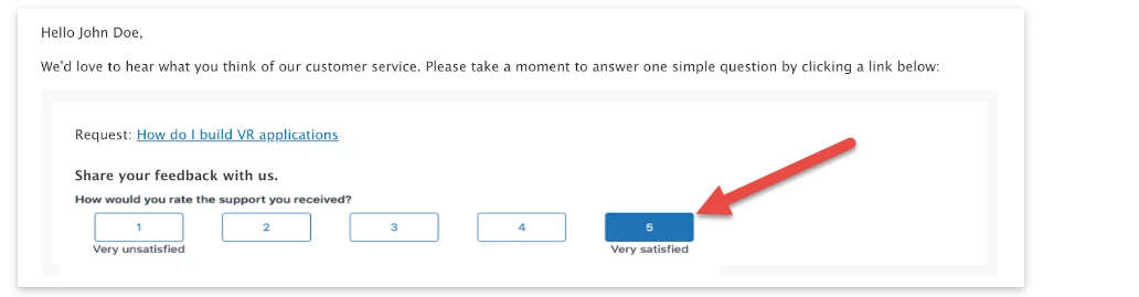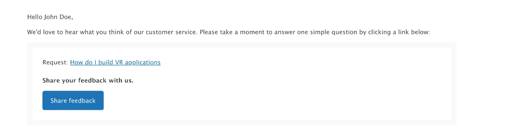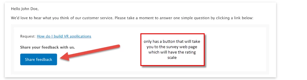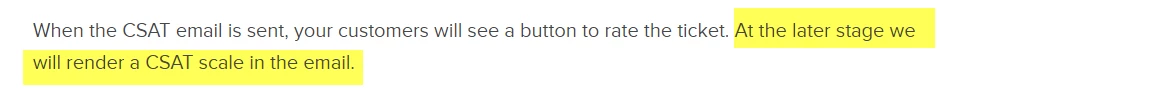 When the CSAT email is sent, your customers will see a button to rate the ticket. At the later stage we will render a CSAT scale in the email.