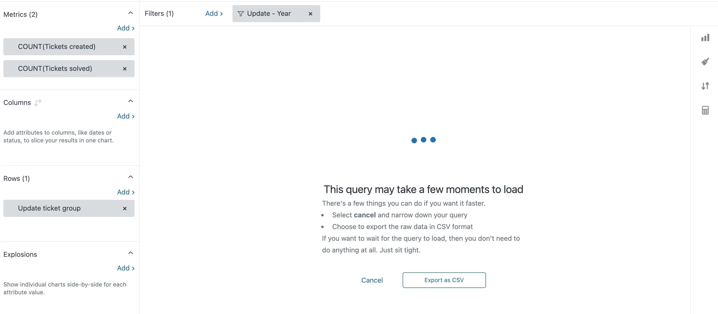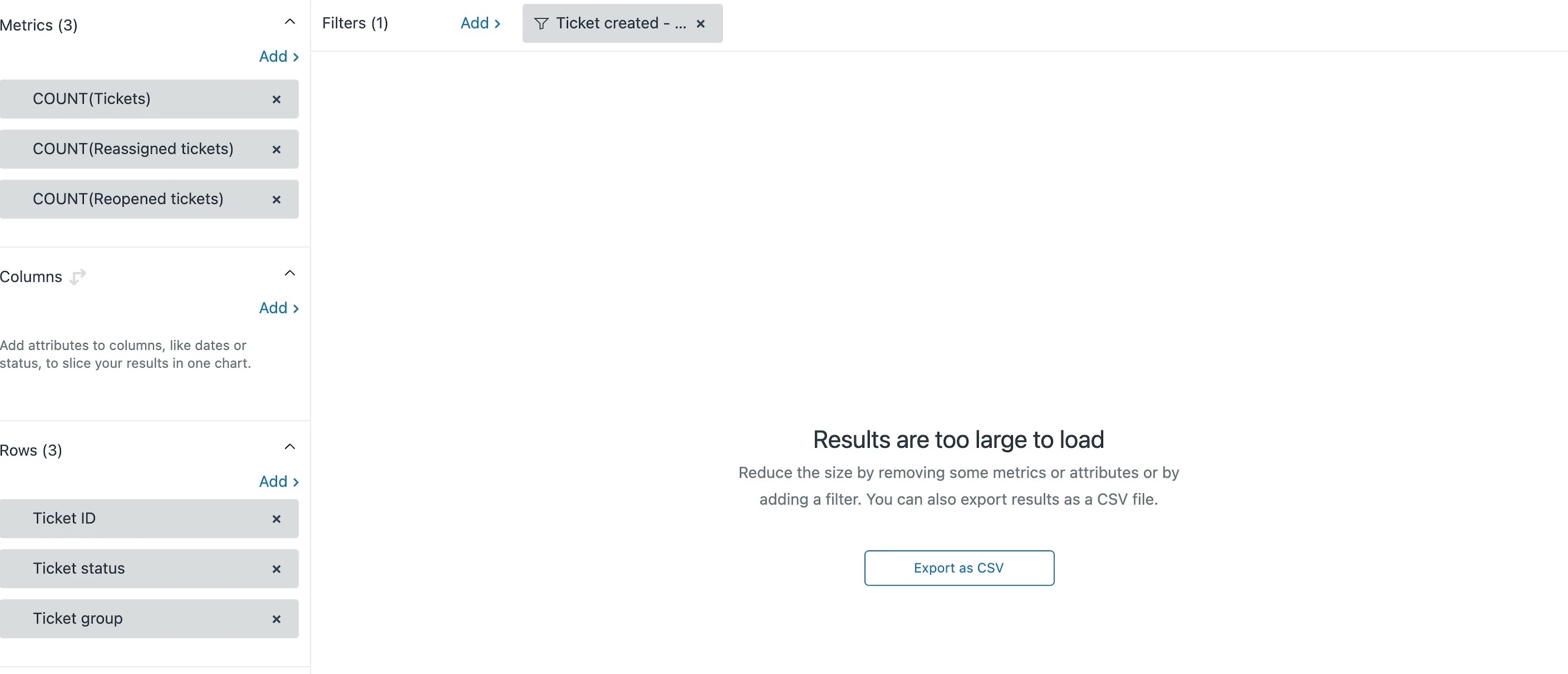 - When a report reaches the 50k row UI limit, it still can be exported in CSV format with up to 500K rows.