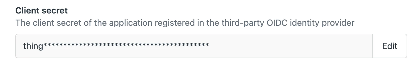 Your IdP might require this, if so then paste it in here. As this is a secret that must be kept confidential at all times, you won’t see the full secret again after the configuration has been saved. If you need to rotate the secret, you can select the Edit button in the configuration form, which will allow you to add and save a new secret.