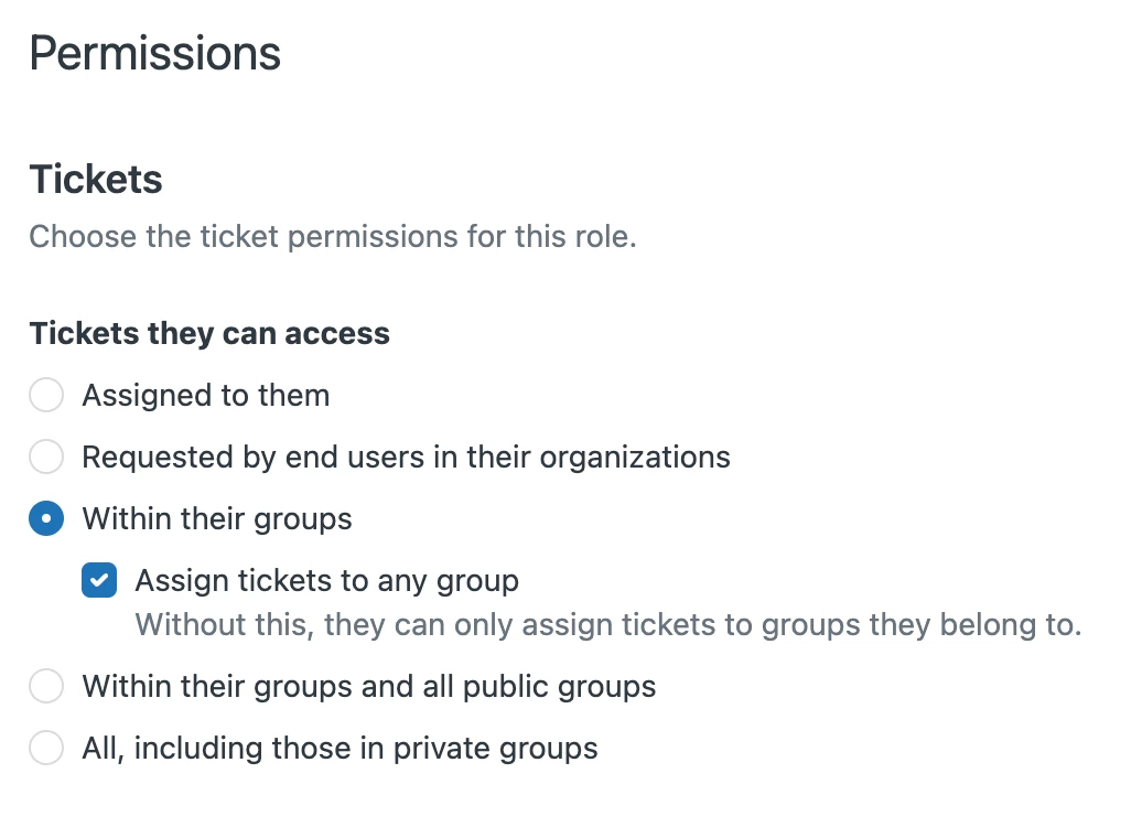 - Go to Admin Center > People > Roles to change ticket access type for roles to access public groups.