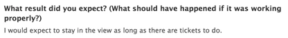 The end describes the expected result that should happen if the system were performing properly. As mentioned before, advocates are in an ideal position to put an issue in context for developers and call out potential impacts on customer workflows. Advocates also always include browser information, even if the issue is not necessarily browser-related.