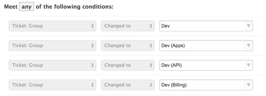 Meet any of the following conditions: Group is changed to any Dev group.