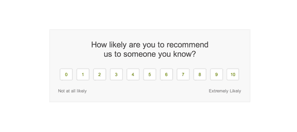 Net Promoter Score® is a tool Zendesk uses to proactively engage with all of our customers, not just those that contact us for support. We use our own native NPS product, which asks customers to rate how likely they are to recommend us to someone they know and prompts them to share a bit more feedback as to why they chose the rating they did. The question typically looks something like this: