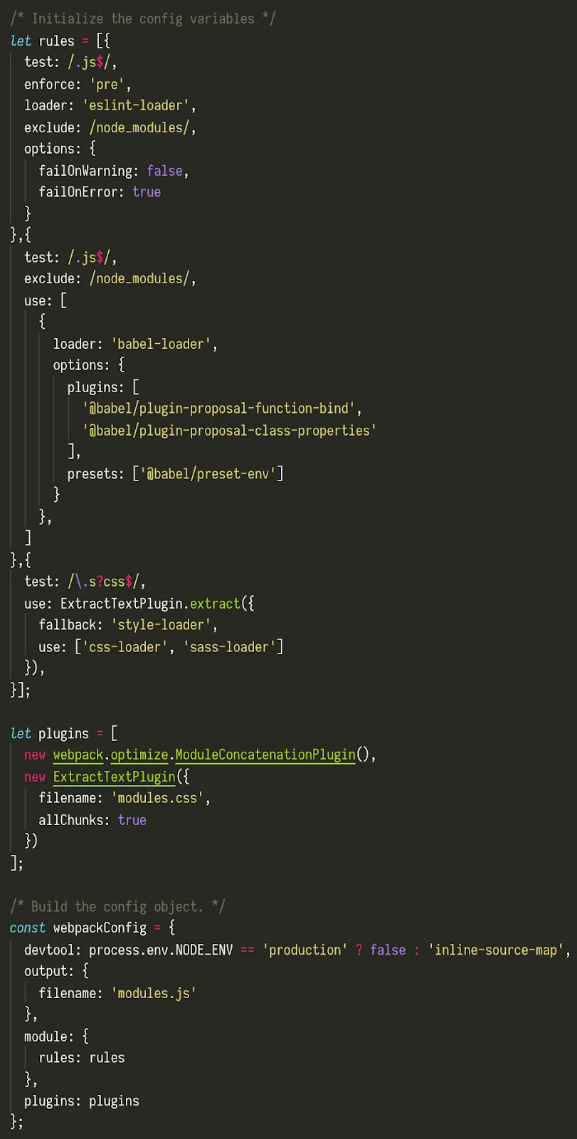Webpack allows us to process all the module code and package it into just three production-ready files.