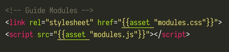 After the modules are built, they are merely included in the document_head.hbs server template like any other theme assets: