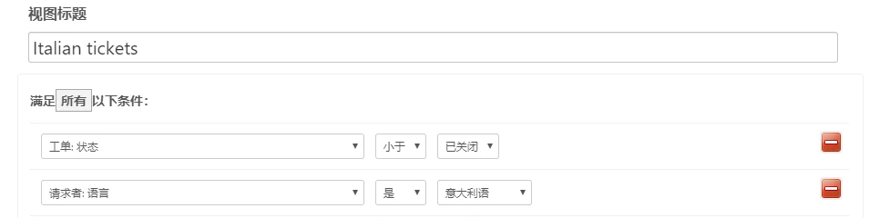 不管用户的语言是如何识别的,它都可以通过请求者的语言条件,在自行程序、报告、触发器和视图中访问。使用此条件,您可以比如根据语言分配新到的工单给特定组或专员。您也可以创建视图和报告以便按语言来跟踪工单。